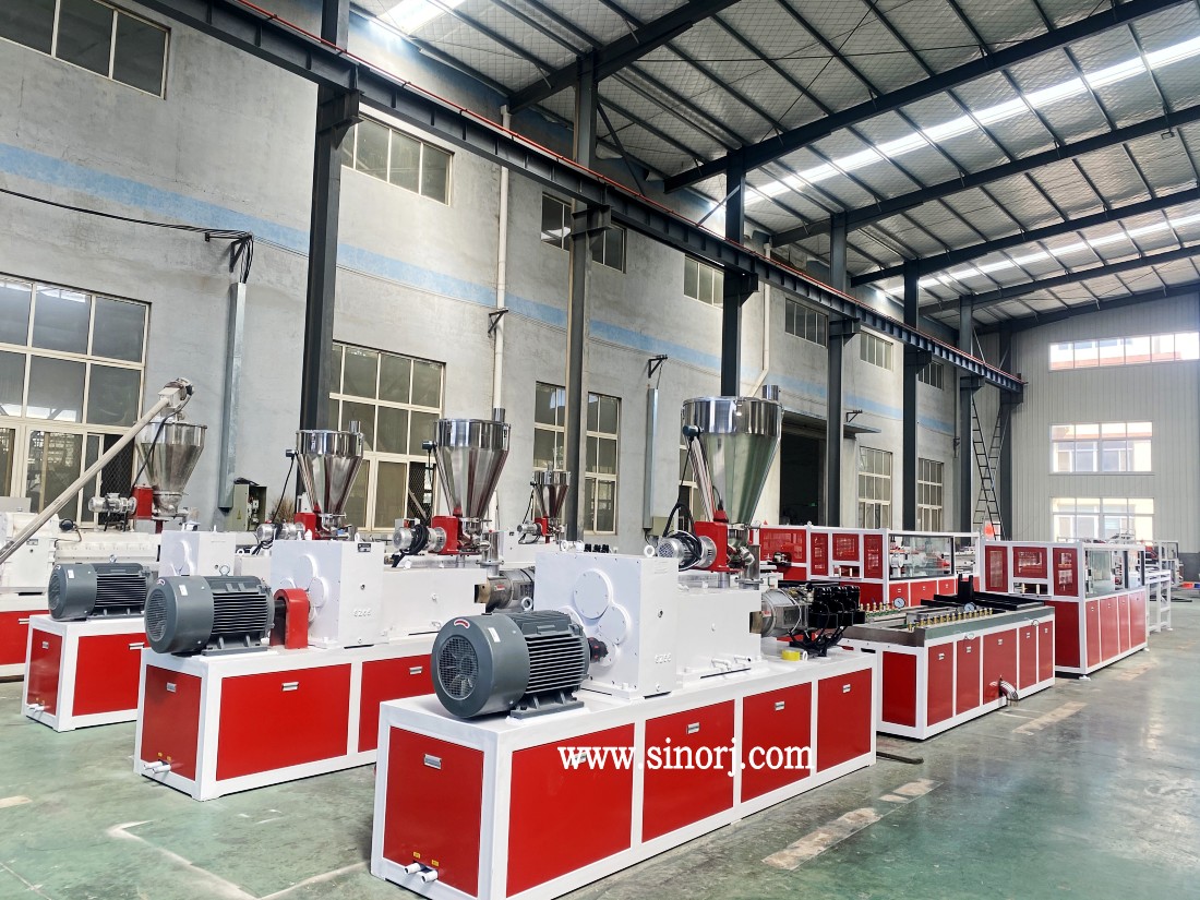 該生產(chǎn)線主要由錐型雙螺桿,模具、真空型臺、牽引機(jī)、切割機(jī)、自動摞板(推板或者機(jī)械手,二選一)組成。生產(chǎn)線采用自動化控制,自動化程度高,設(shè)備穩(wěn)定,操作簡便,生產(chǎn)效率高。通過更換不同規(guī)格的模具可以生產(chǎn)多種規(guī)格、尺寸、形狀、厚度的木塑裝飾墻板,木塑墻板,快裝墻板,生態(tài)墻板。
